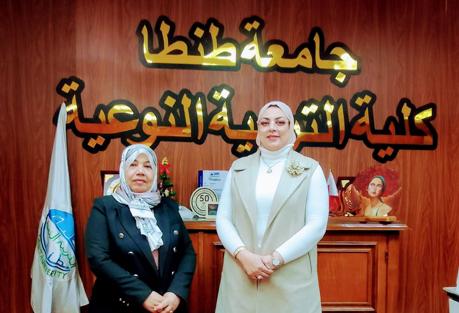 استقبلت أ.د رانيا الإمام، عميد كلية التربية النوعية جامعة طنطا، أ.د إيمان حامد ربيع، أستاذ الملابس والنسيج بقسم الاقتصاد المنزلي، حيث قدمت لها خالص التهاني بمناسبة صدور قرار معالي أ.د محمد حسين، رئيس الجامعة، بتكليف سيادتها وكيلاً للكلية لشؤون التعليم والطلاب لمدة ثلاث أعوام.