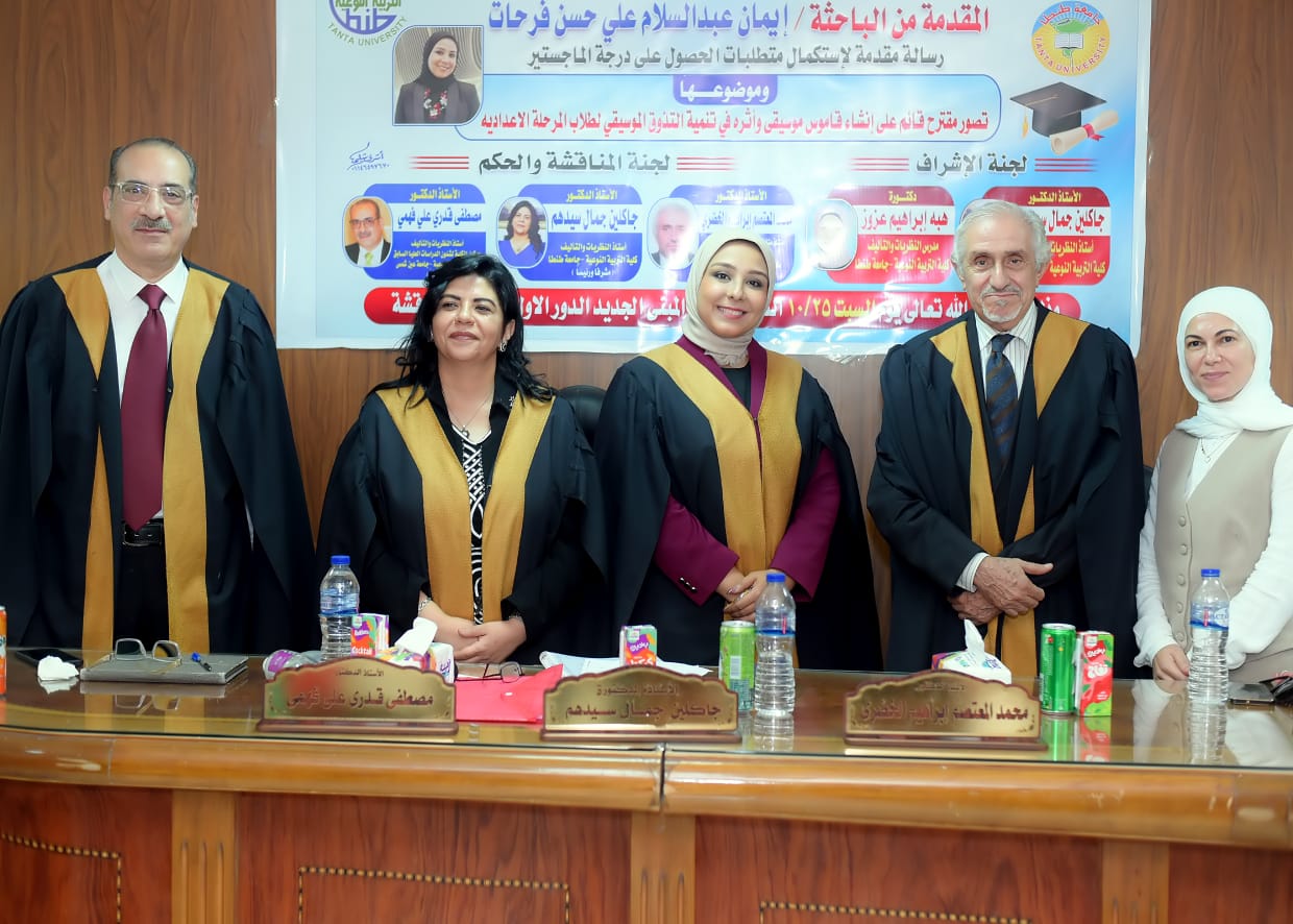 At the Faculty of Specific Education, Tanta University, and under the patronage of Prof. Rania Abdo El-Imam, Dean of the Faculty, the Master’s thesis of researcher Eman Abdul-Salam Ali Hassan Farahat was discussed on Saturday, October 25, 2025, at 11:00 PM.