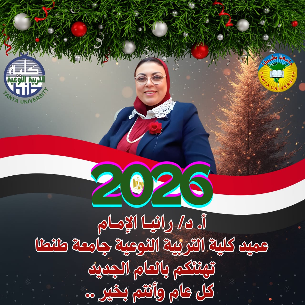 عميد نوعية طنطا تهنئ الجميع بمناسبة حلول العام الميلادي الجديد